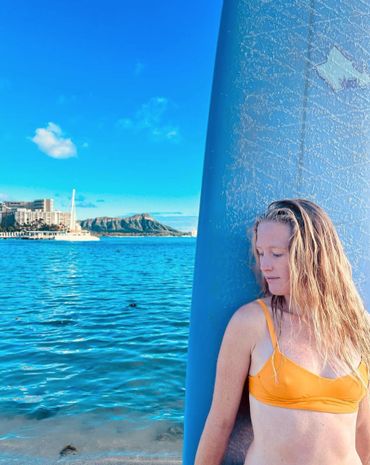 Coutney grew up in Wichita, Kansas, and discovered her love for the ocean & the raw beauty of Hawaii , at 19.